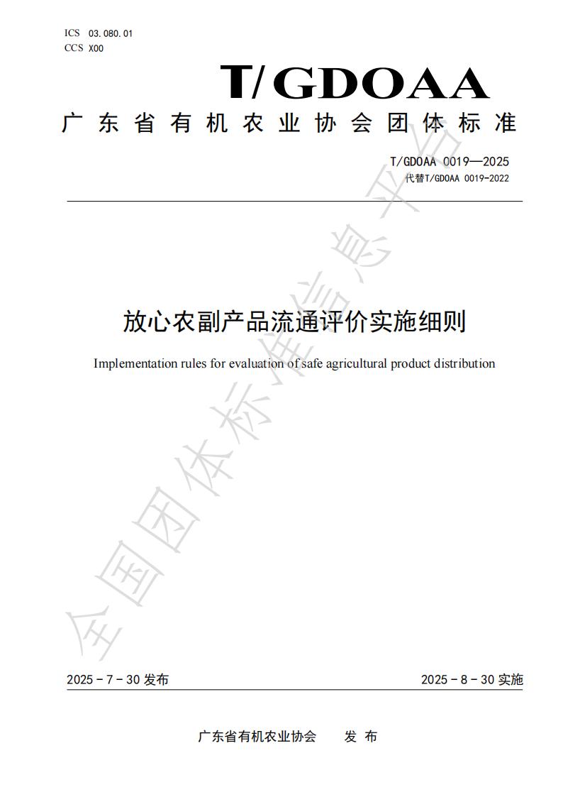 T/GDOAA 0019-2025 放心农副产品流 通评价实施细则