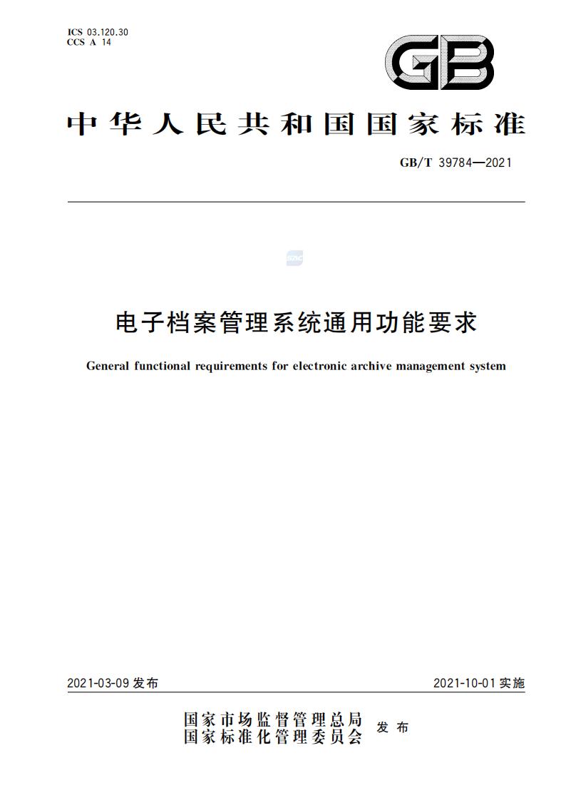 GB/T 39784-2021 电子档案管理系统通用功能要求